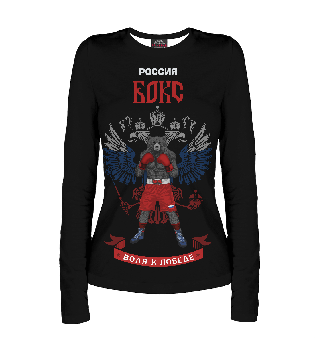 Женский лонгслив с принтом «Россия бокс - воля к победе !»