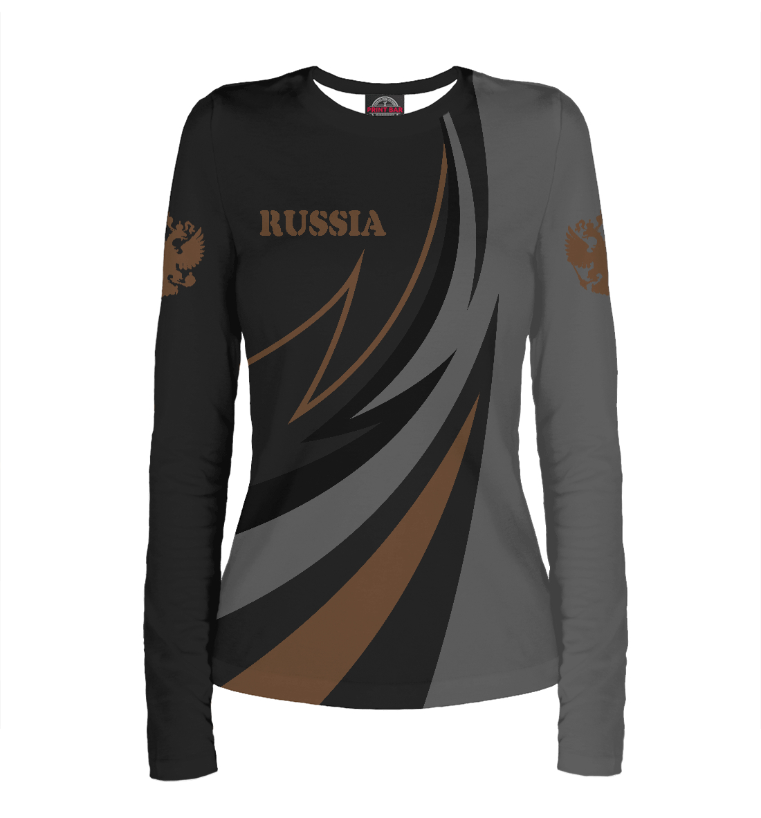 Женский лонгслив с принтом «Россия герб на рукавах»