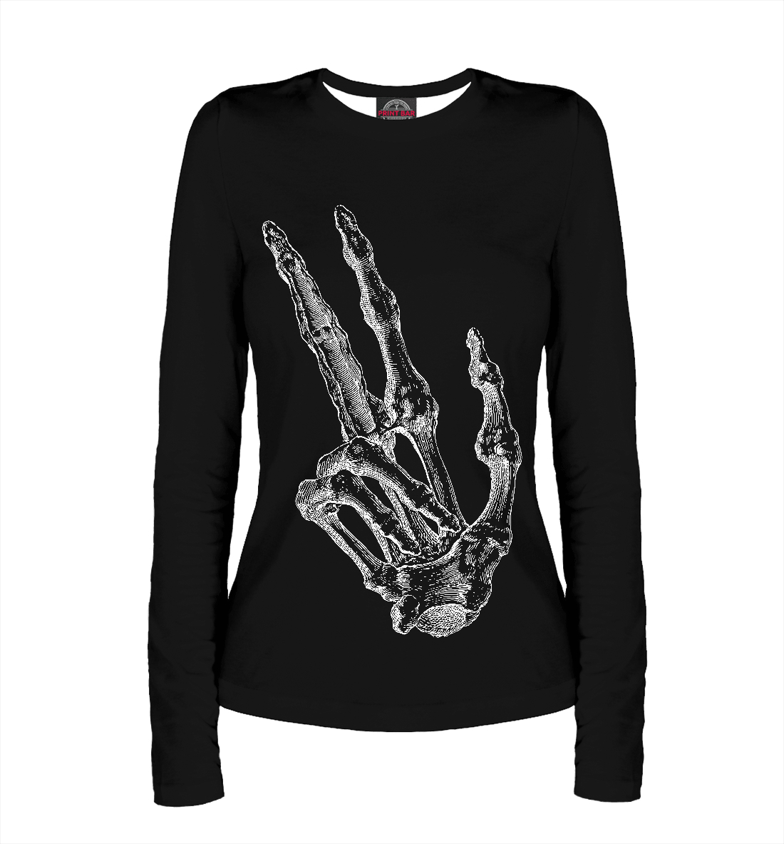 Женский лонгслив с принтом «Рука скелета - всё круто»