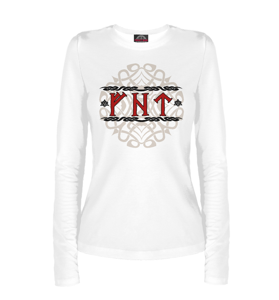 Женский лонгслив с принтом «Руны победы на белом фоне»