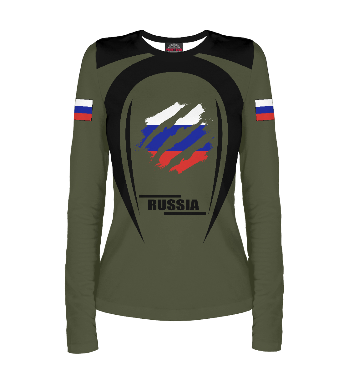 Женский лонгслив с принтом «RUSSIA на зелёном фоне»