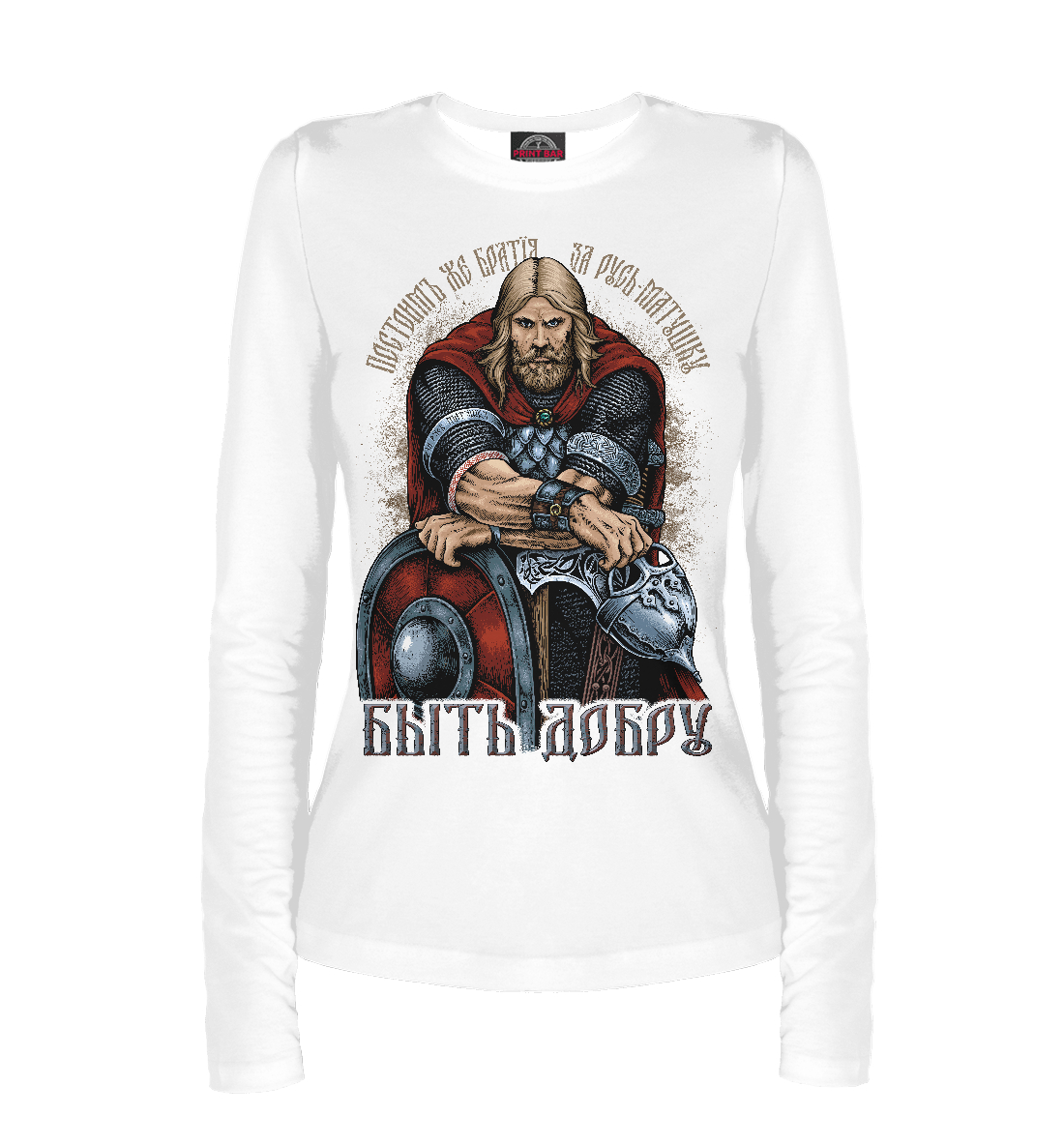 Женский лонгслив с принтом «Русский Воин (белый фон)»
