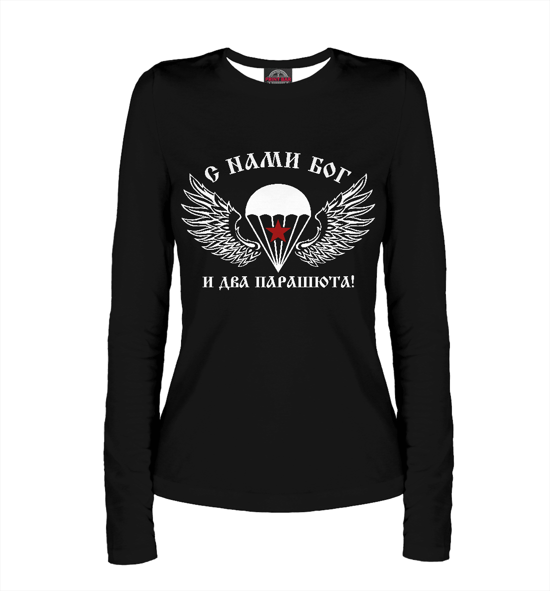 Женский лонгслив с принтом «С нами Бог (черный фон)»