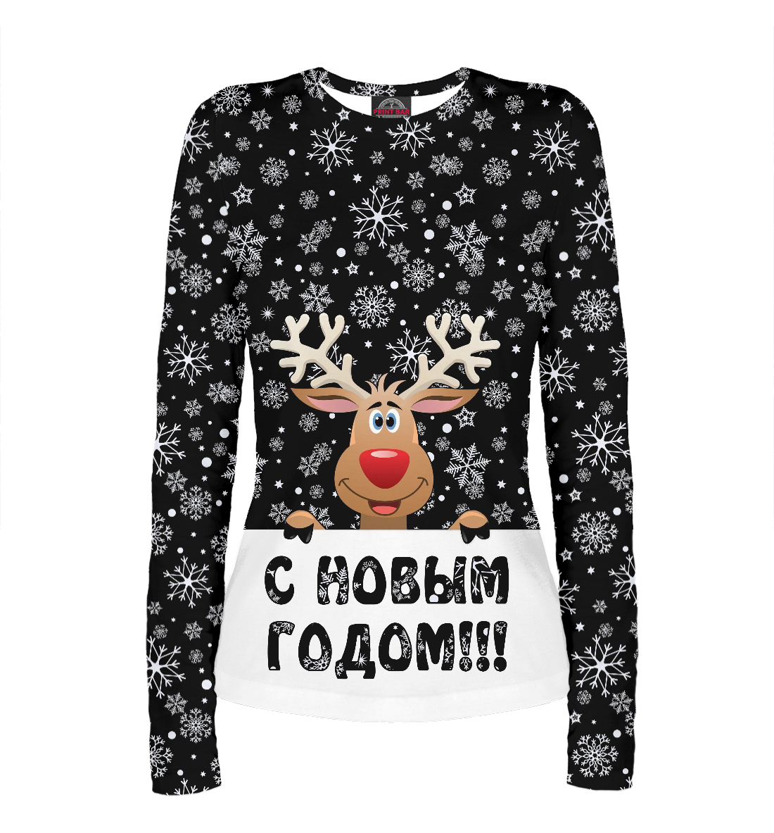 Женский лонгслив с принтом «С Новым Годом!!!»