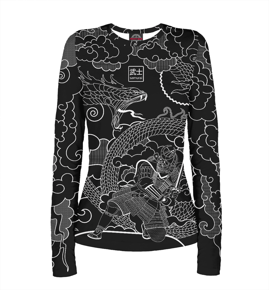 Женский лонгслив с принтом «Самурай и дракон»