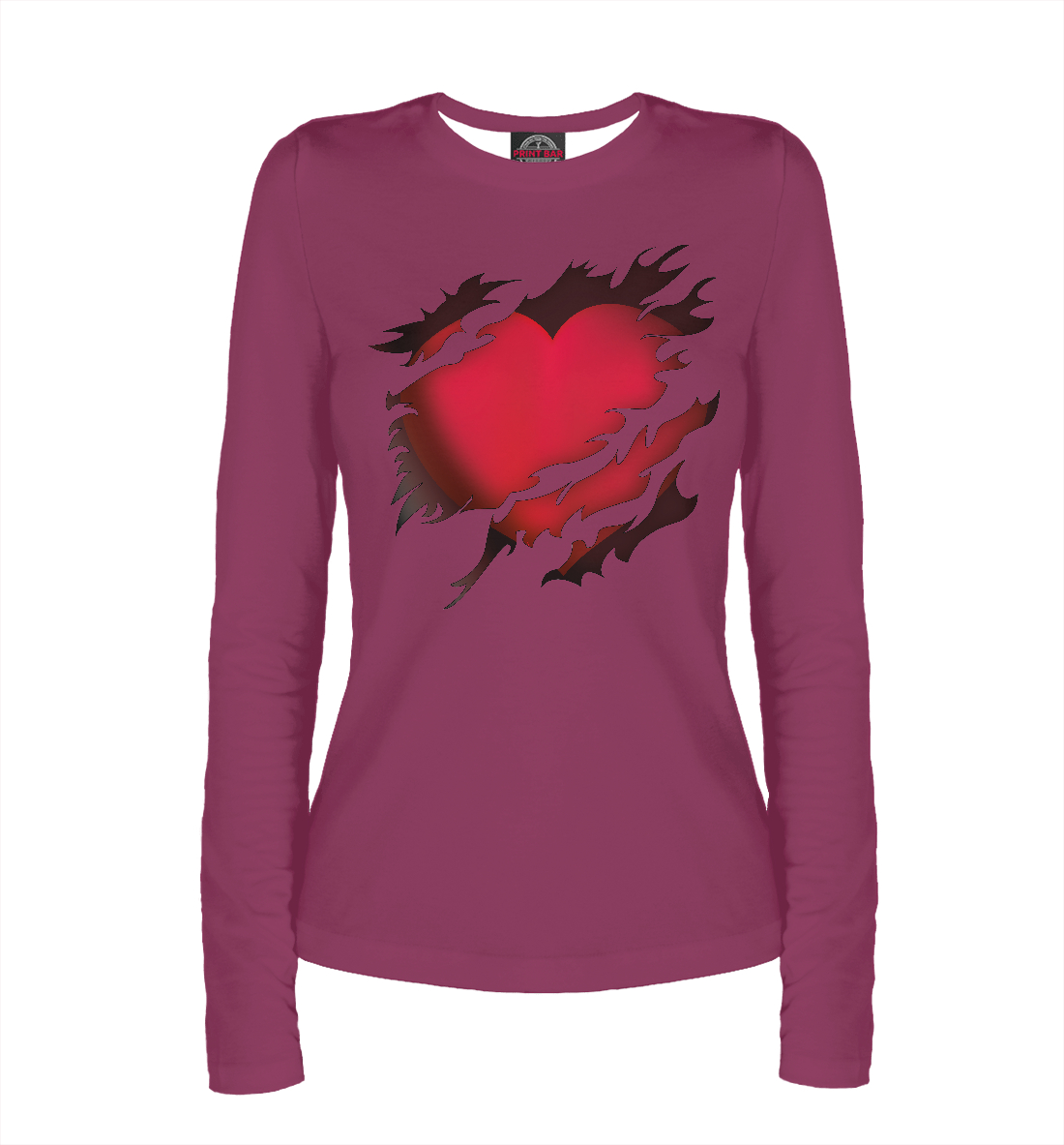 Женский лонгслив с принтом «Сердце в разрыве груди»