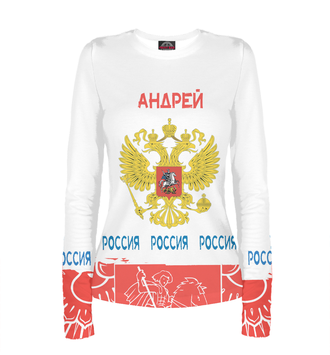 Женский лонгслив с принтом «Символика РФ АНДРЕЙ»