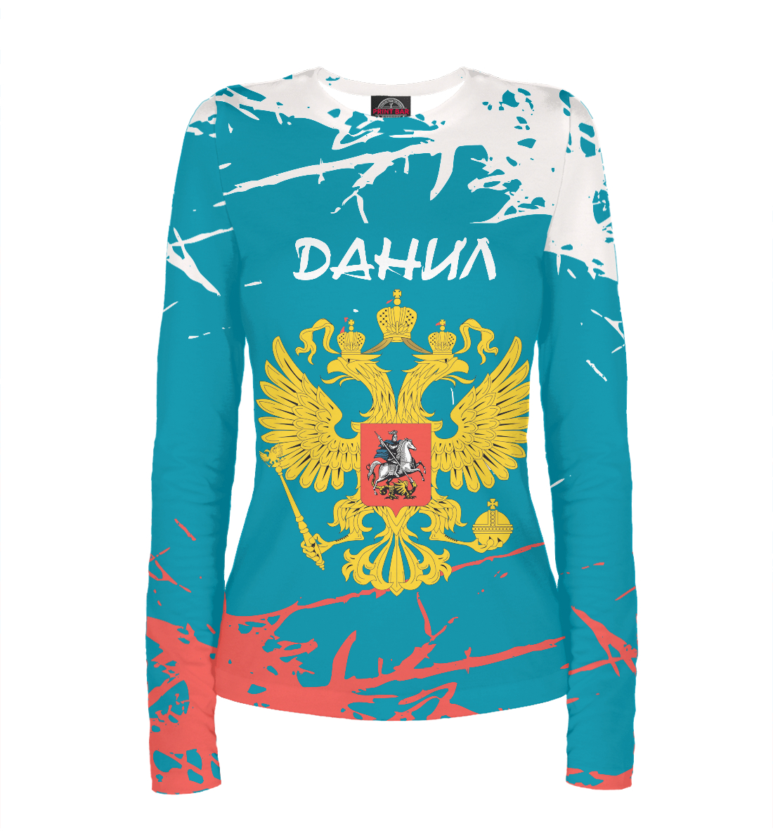 Женский лонгслив с принтом «Символика РФ ДАНИЛ»