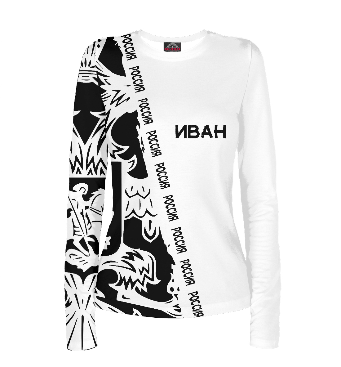 Женский лонгслив с принтом «Символика РФ ИВАН»
