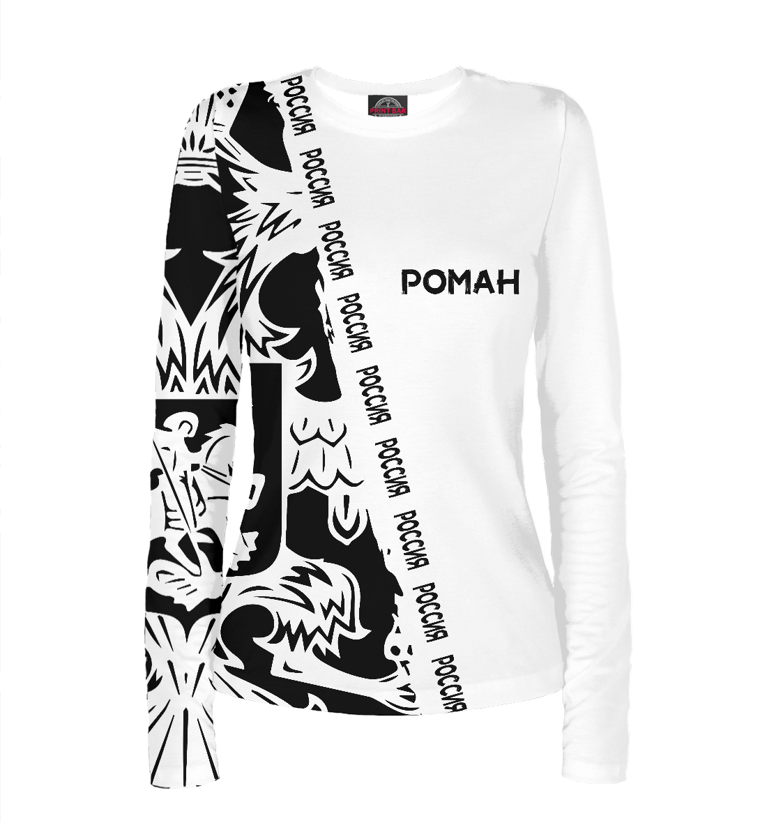Женский лонгслив с принтом «Символика РФ РОМАН»