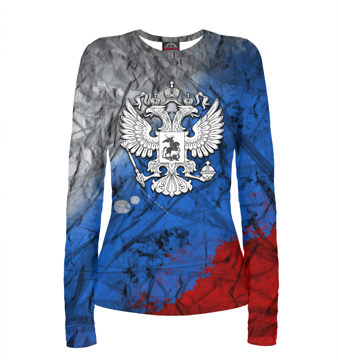 Женский лонгслив с принтом «Символика РФ (триколор)»