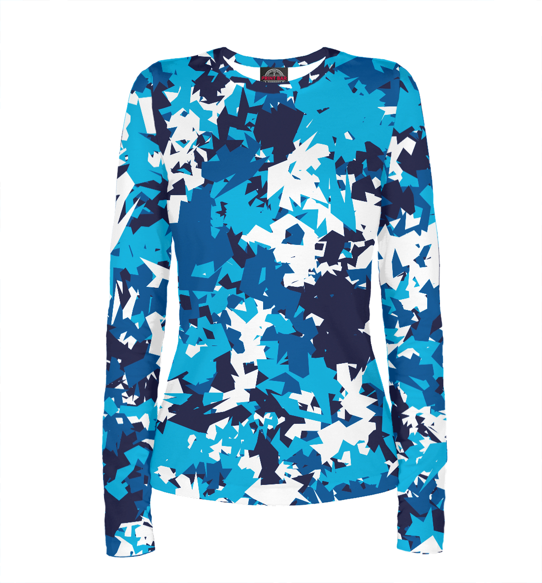 Женский лонгслив с принтом «Сине-Бело-Голубой камуфляж»
