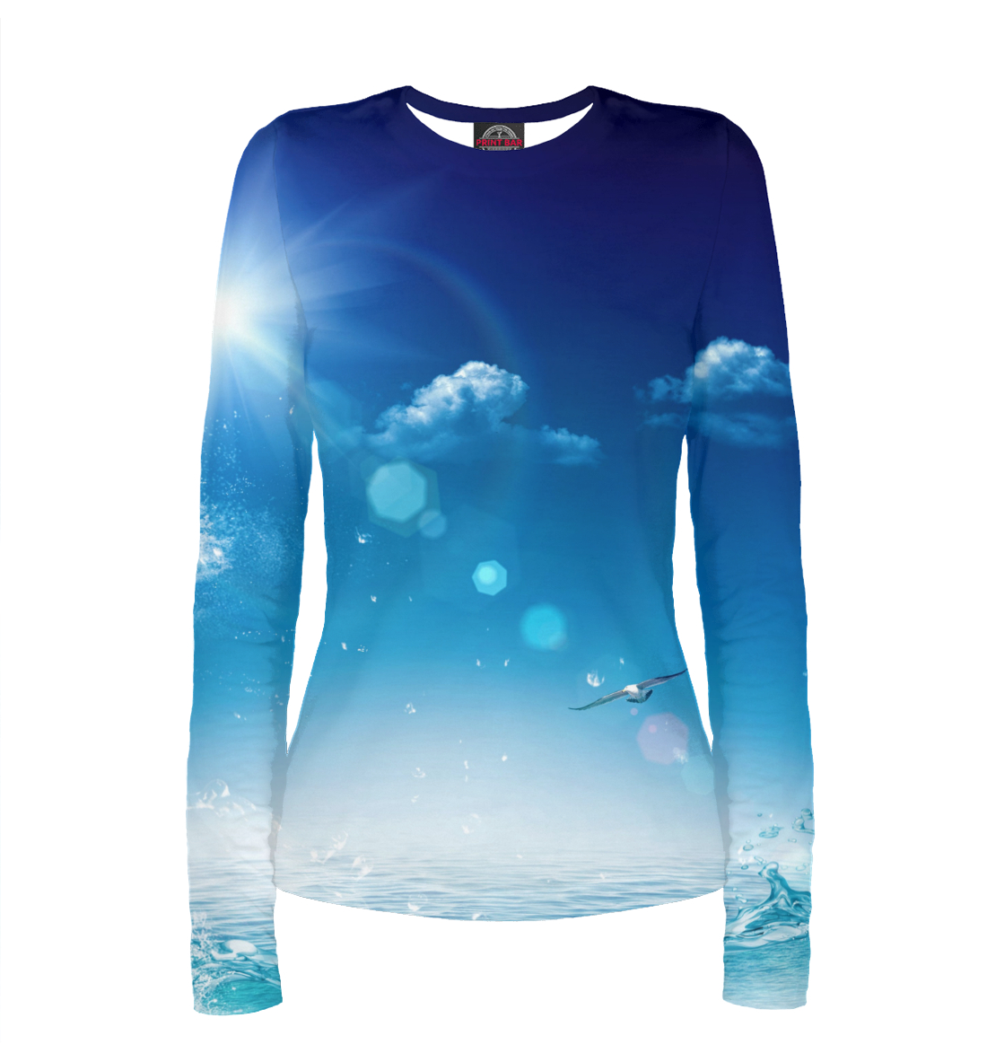 Женский лонгслив с принтом «Синее небо и море»