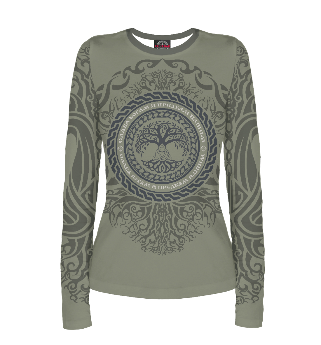 Женский лонгслив с принтом «Слава богам и предкам нашим»