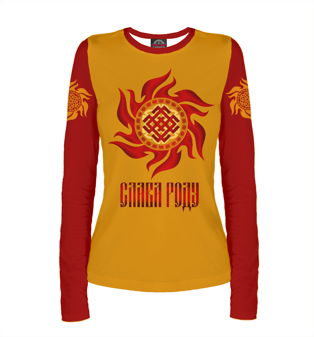 Женский лонгслив с принтом «Слава Роду/символ Руси в символе солнца»