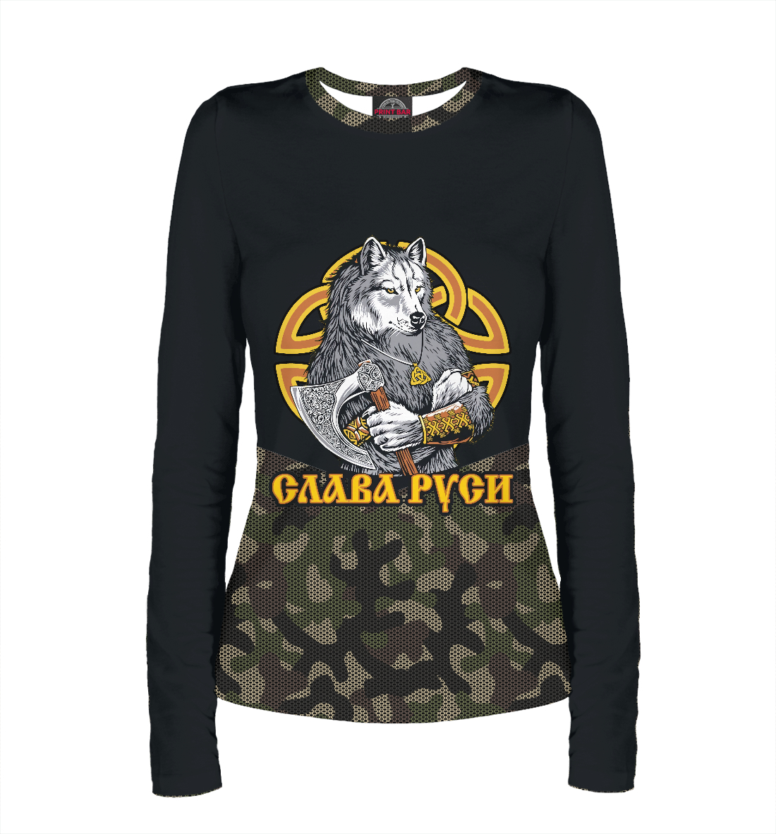 Женский лонгслив с принтом «Слава Руси»