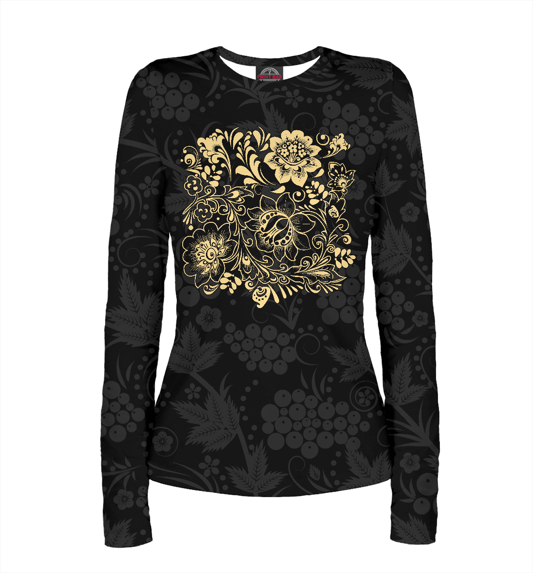 Женский лонгслив с принтом «Славянский орнамент (хохлома)»