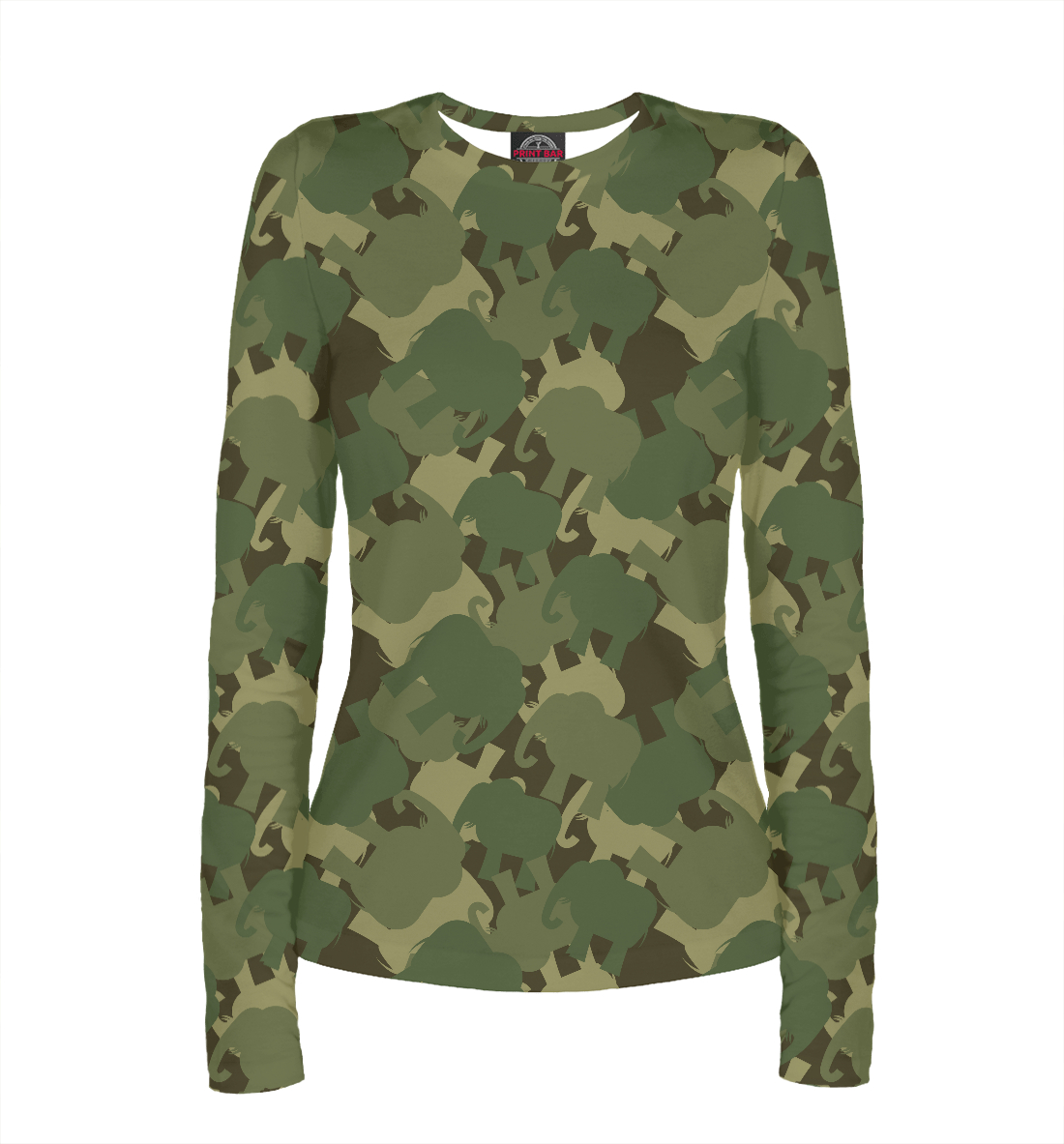 Женский лонгслив с принтом «Слоны (камуфляж)»
