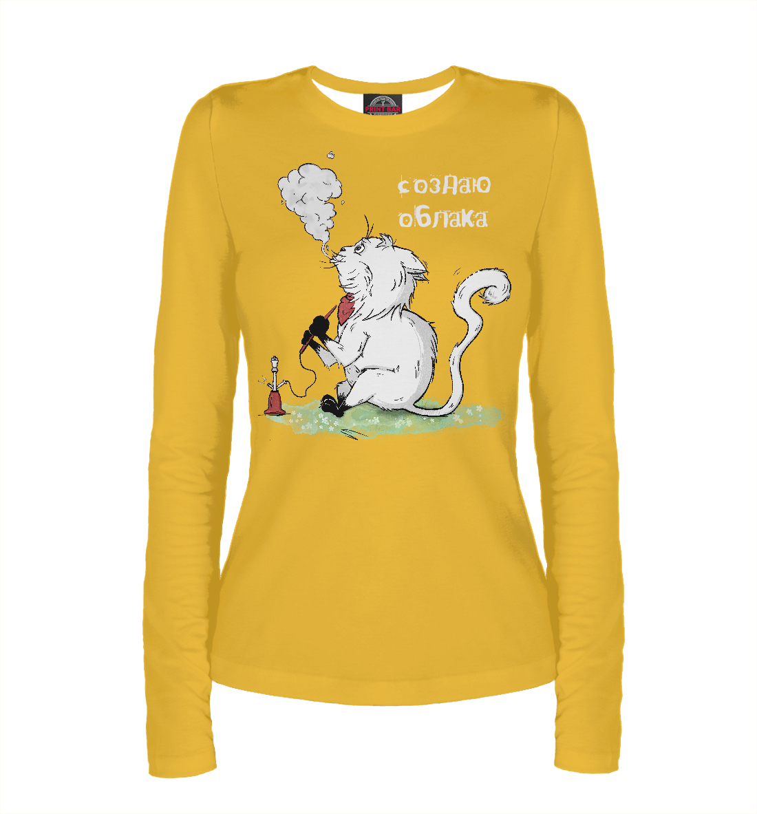 Женский лонгслив с принтом «Создаю облака (желтый фон)»