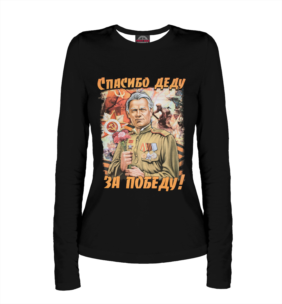 Женский лонгслив с принтом «Спасибо деду за победу!»