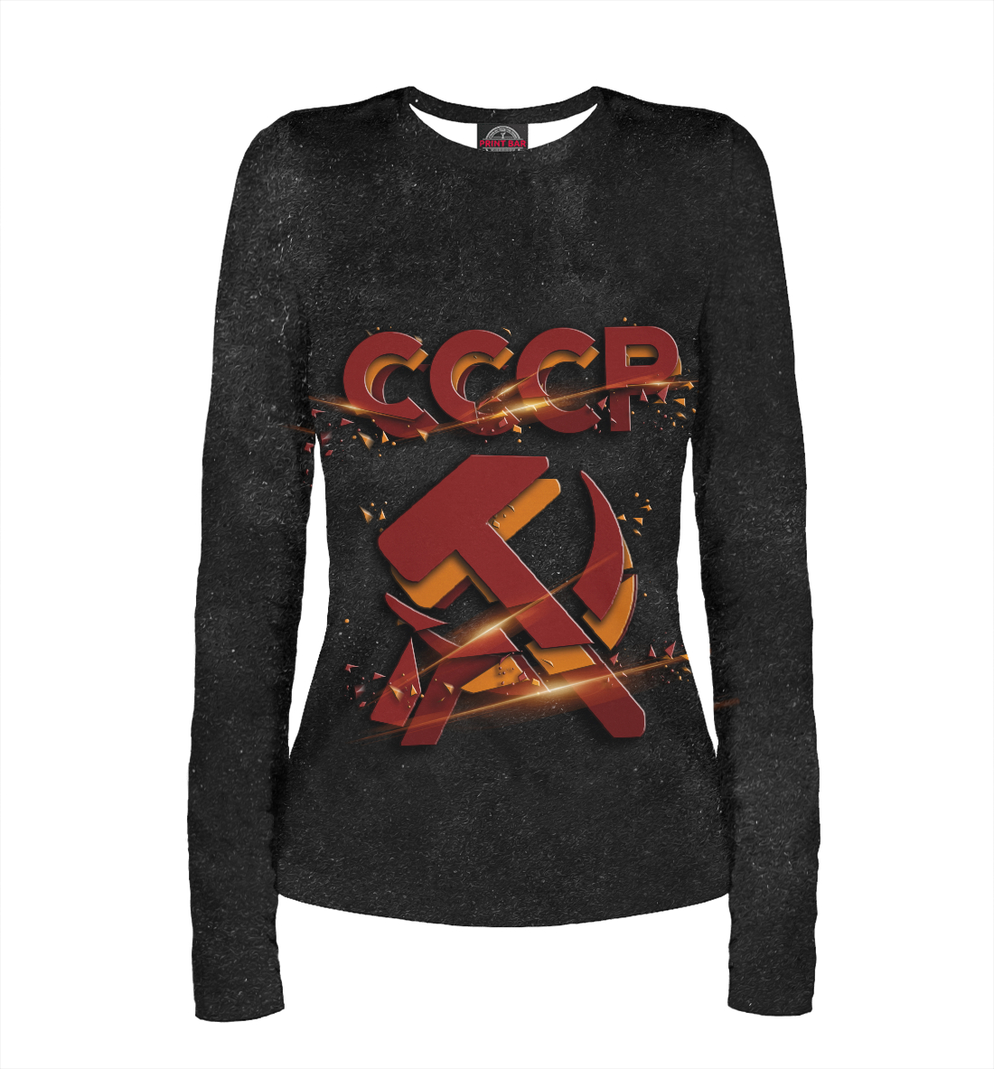 Женский лонгслив с принтом «СССР - серп и молот (темно-серый фон)»