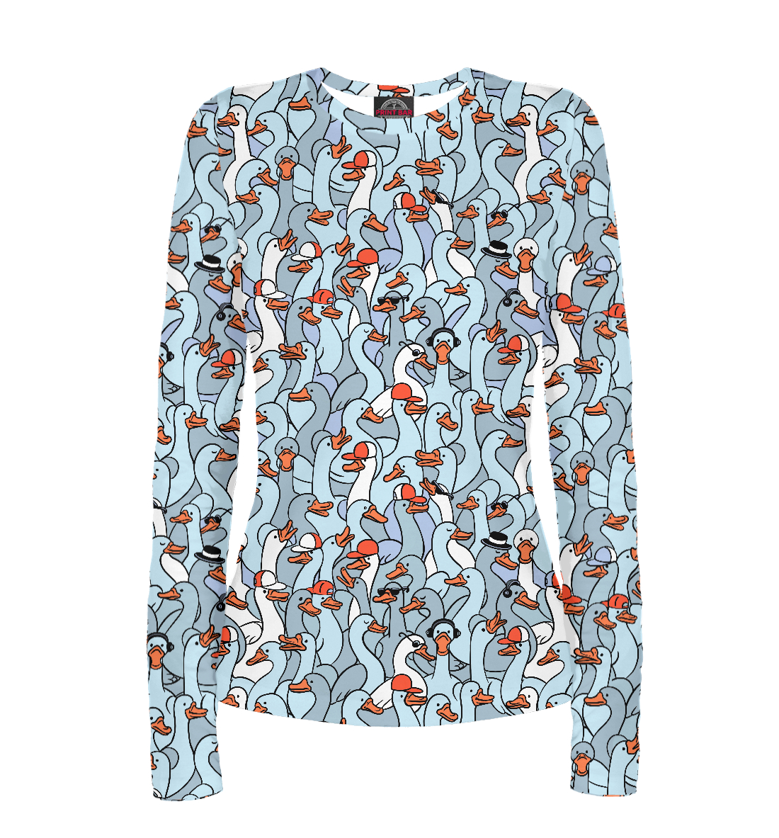 Женский лонгслив с принтом «Стадо гусей серебристо-серых»