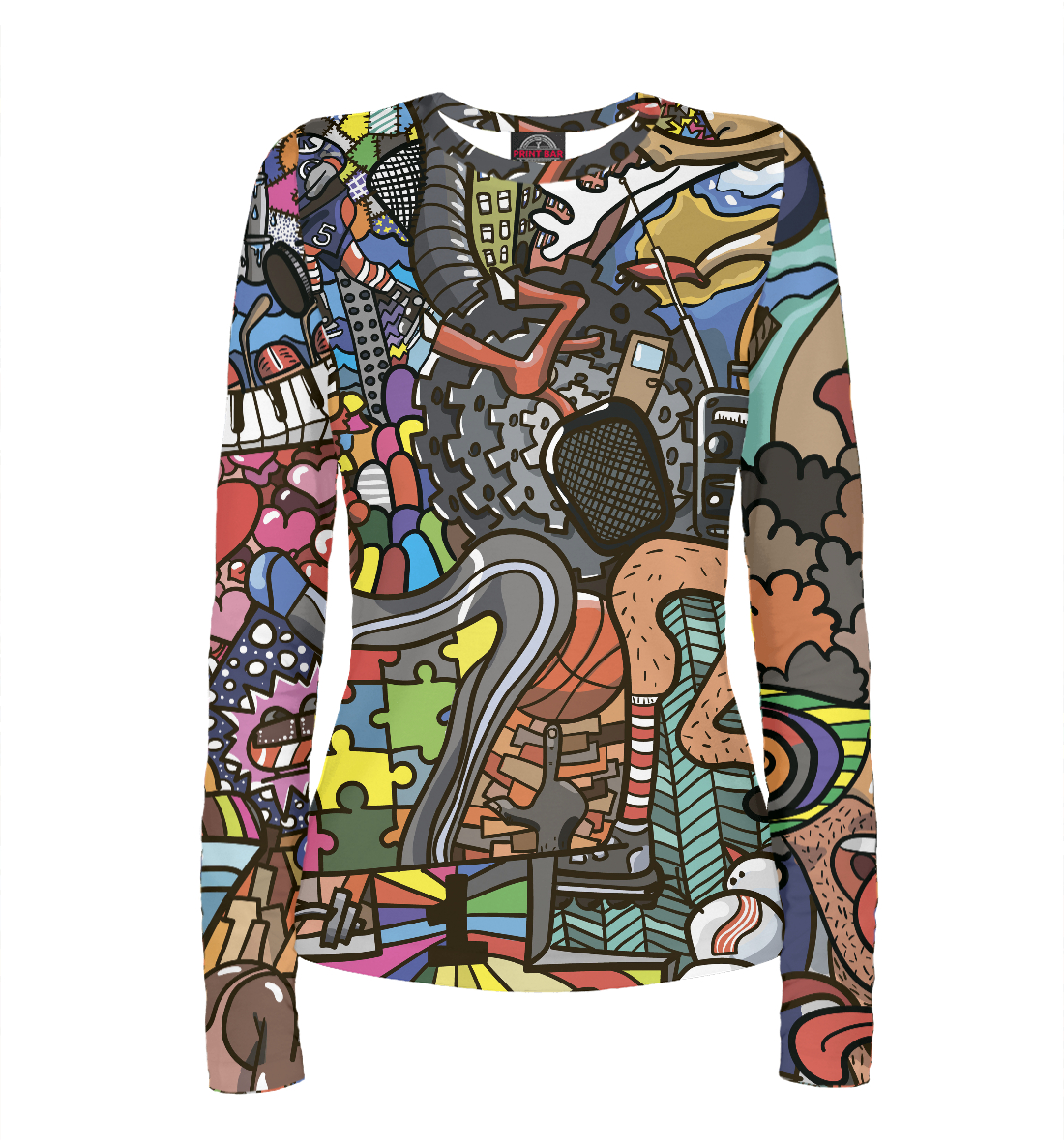 Женский лонгслив с принтом «Стикербомбинг психоделика»