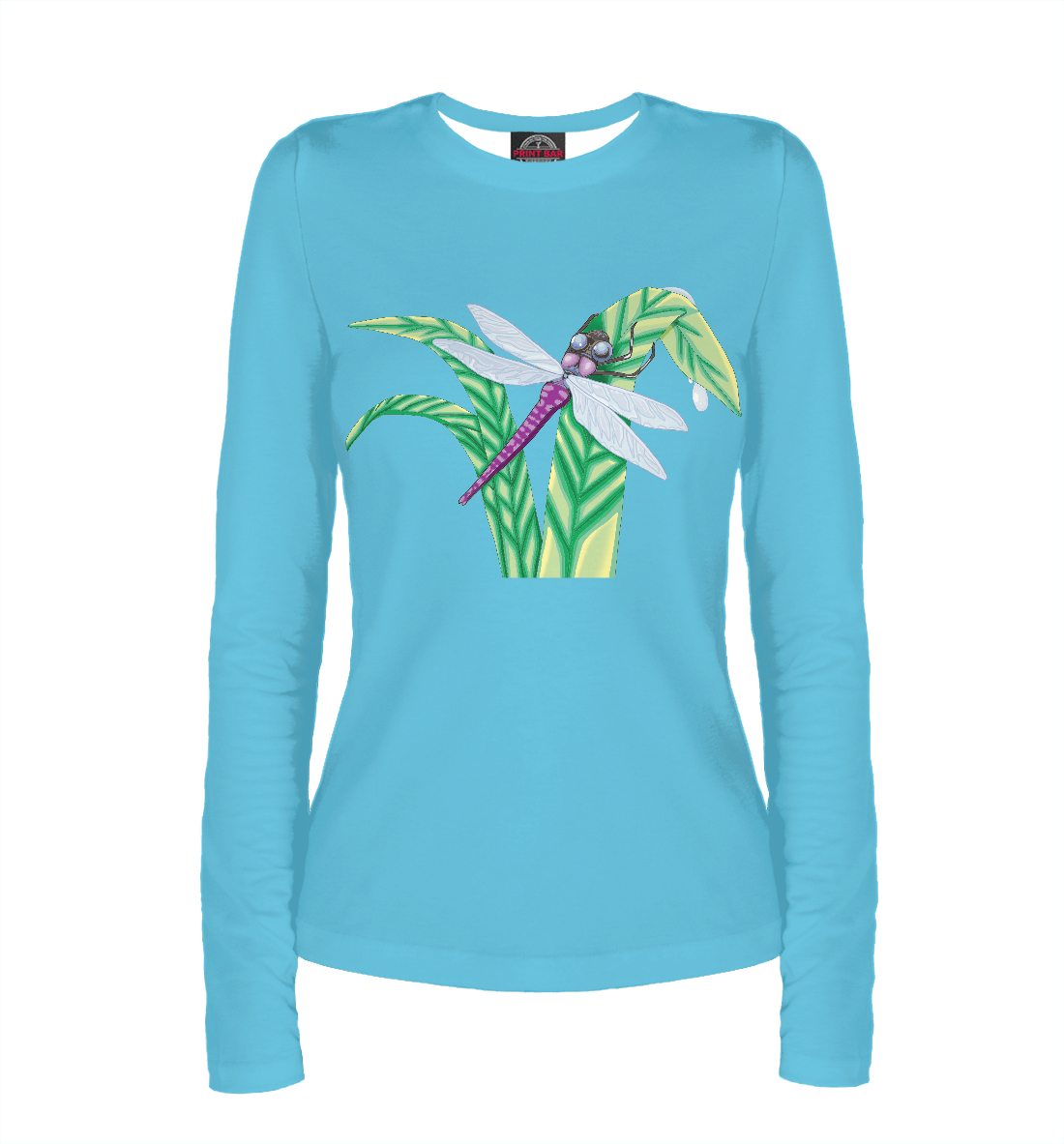 Женский лонгслив с принтом «Стрекоза на травинке»