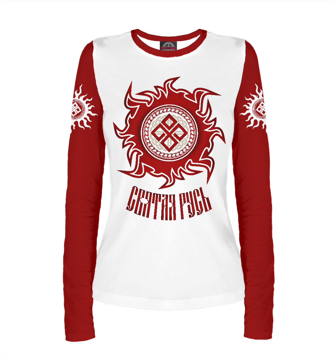 Женский лонгслив с принтом «Святая Русь - символика оберег Даждьбога»