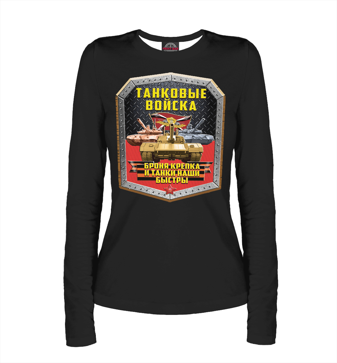 Женский лонгслив с принтом «ТАНКОВЫЕ ВОЙСКА (броня)»