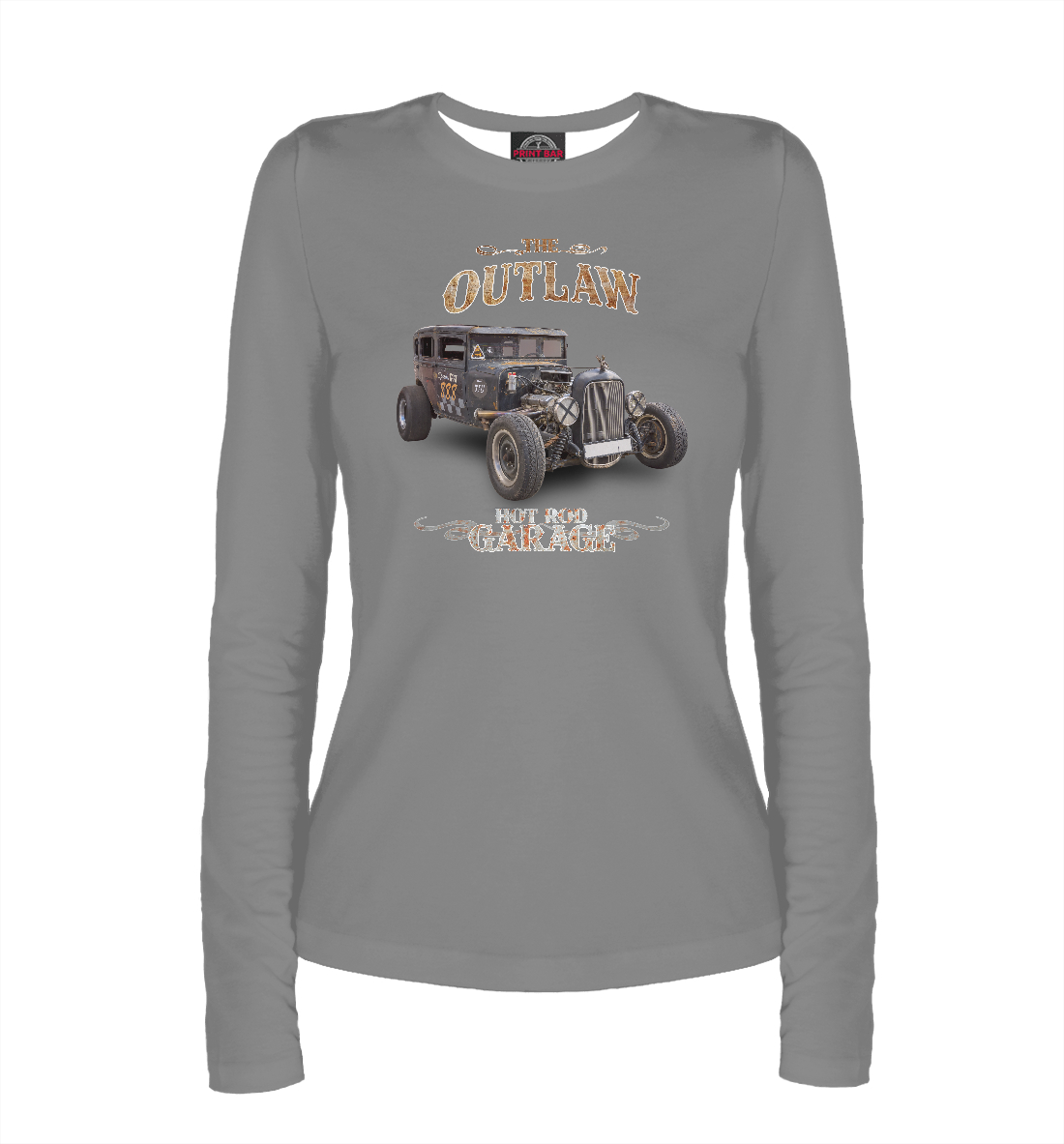 Женский лонгслив с принтом «The Outlaw Hot Rod Garage на сером»