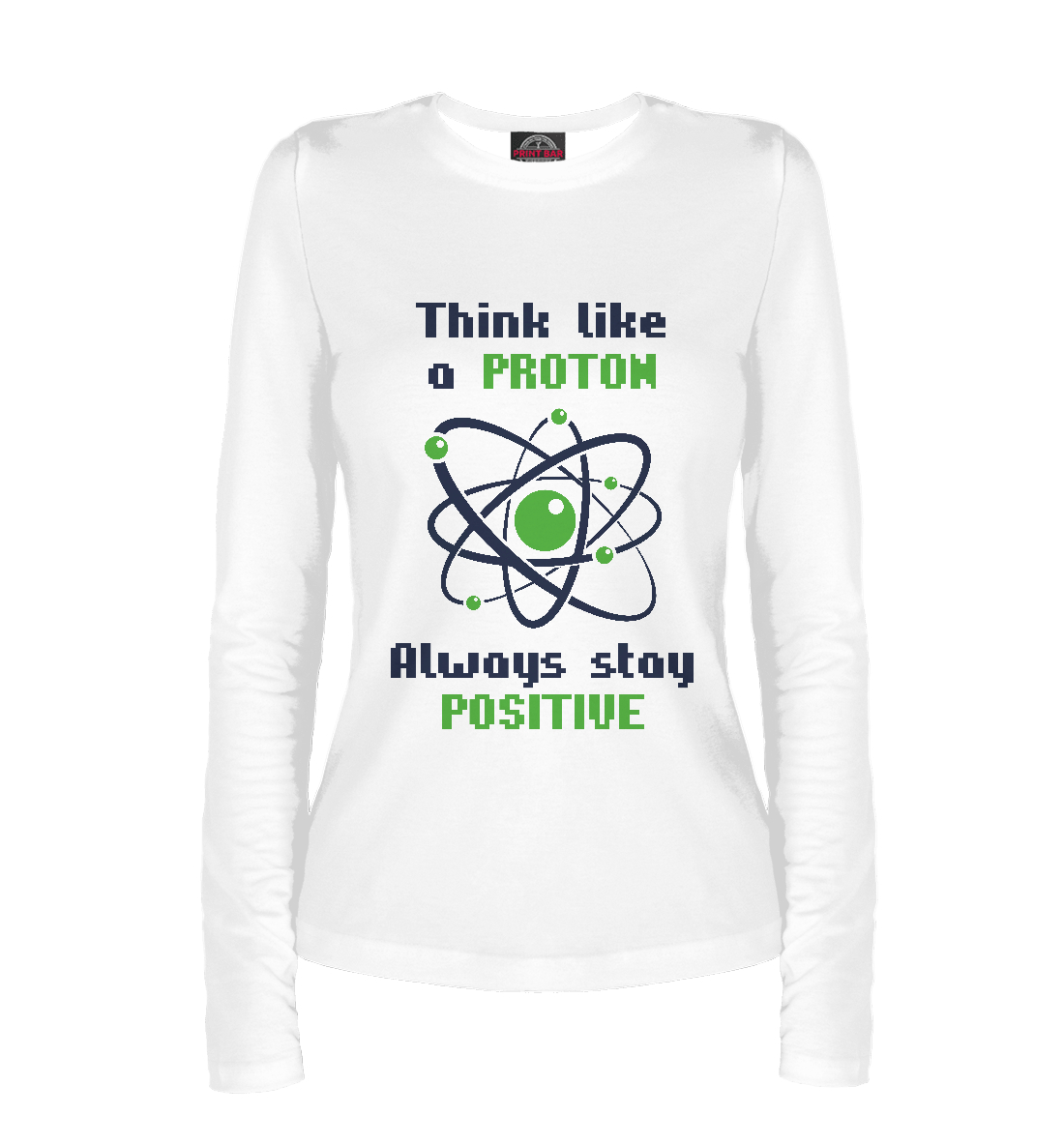 Женский лонгслив с принтом «Think like a Proton, always stay positive!»