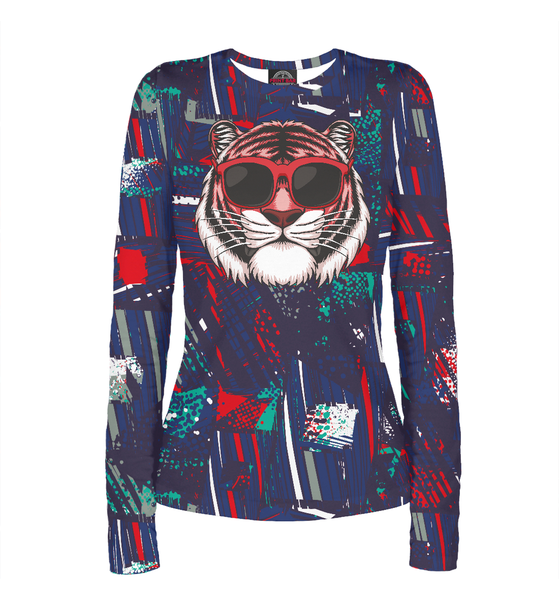 Женский лонгслив с принтом «Тигр в солнечных очках»