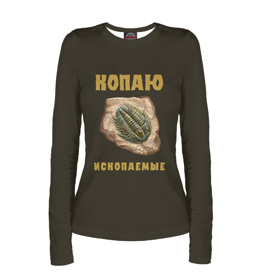 Женский лонгслив с принтом «Трилобит на камне копаю ископаемые»