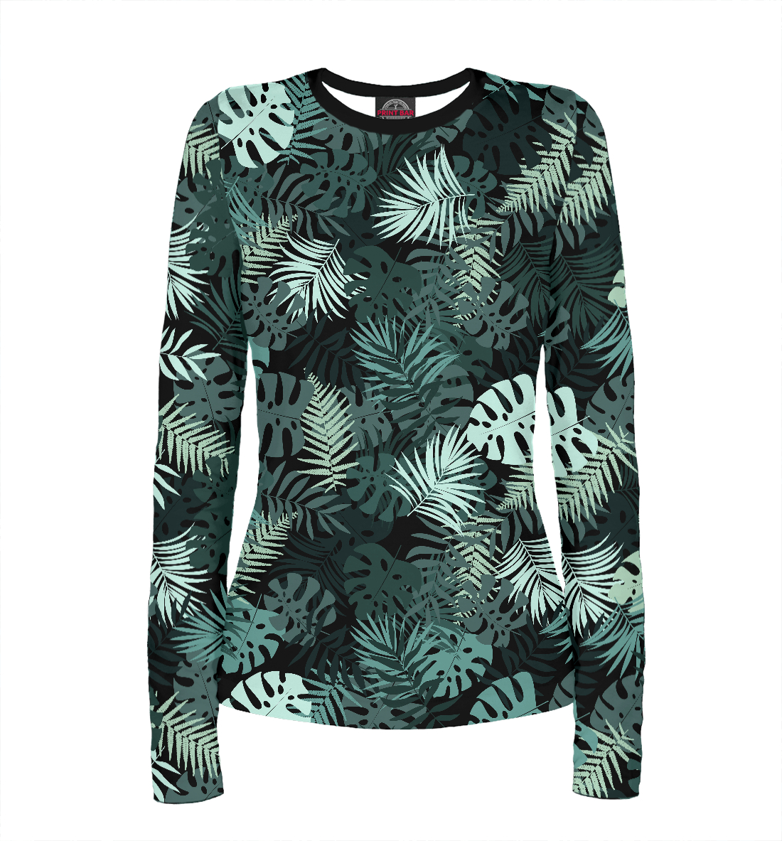 Женский лонгслив с принтом «Тропические листья монстеры заленые»