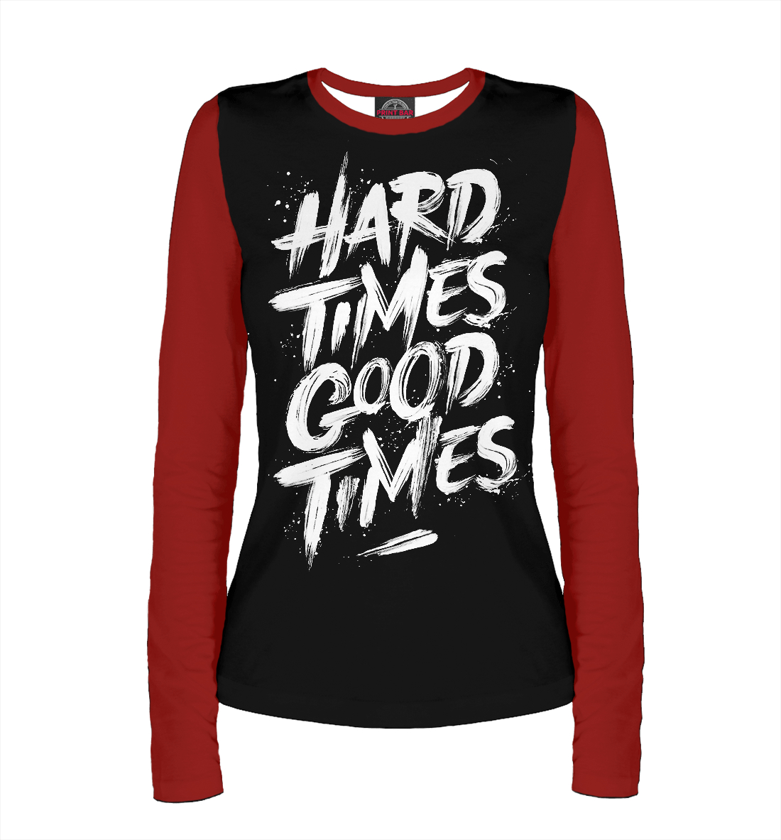 Женский лонгслив с принтом «ТЯЖЕЛЫЕ ВРЕМЕНА ВО БЛАГО»