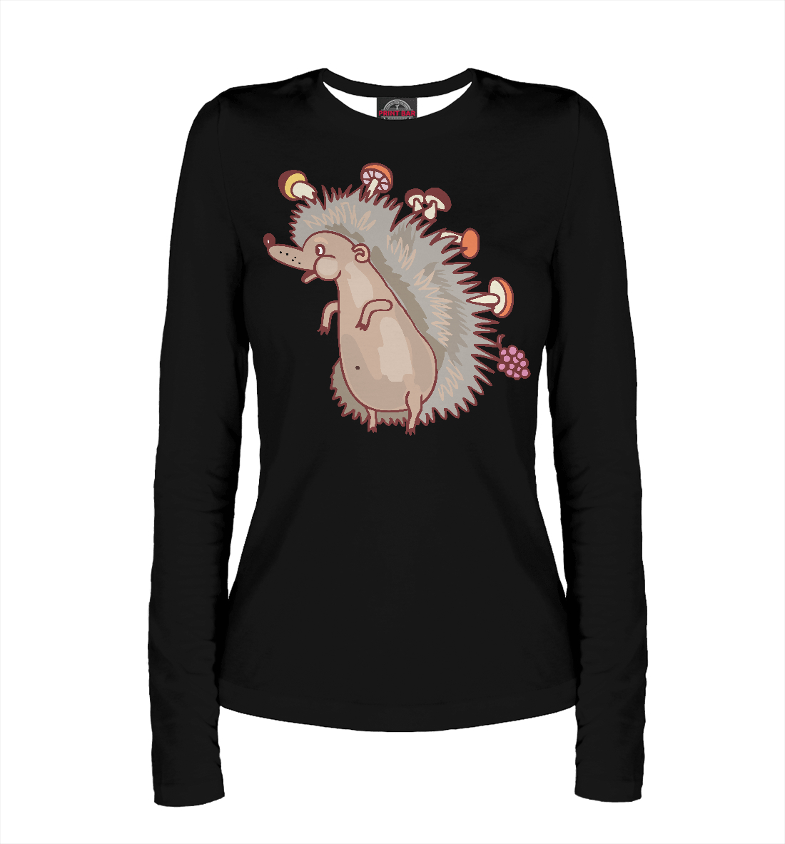 Женский лонгслив с принтом «Весёлый ёжик с грибами»