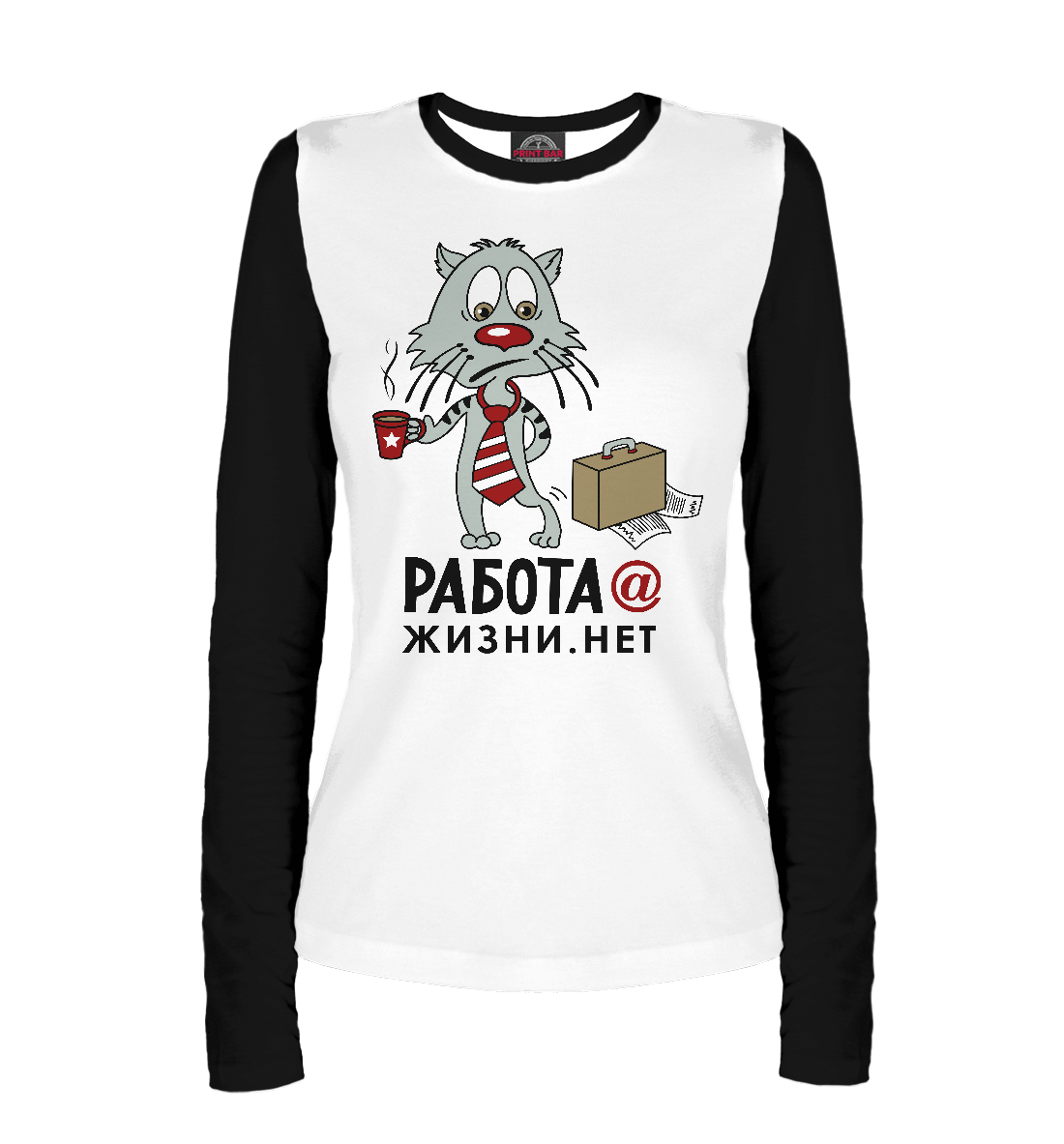 Женский лонгслив с принтом «Весь в работе кот (ч/б)»