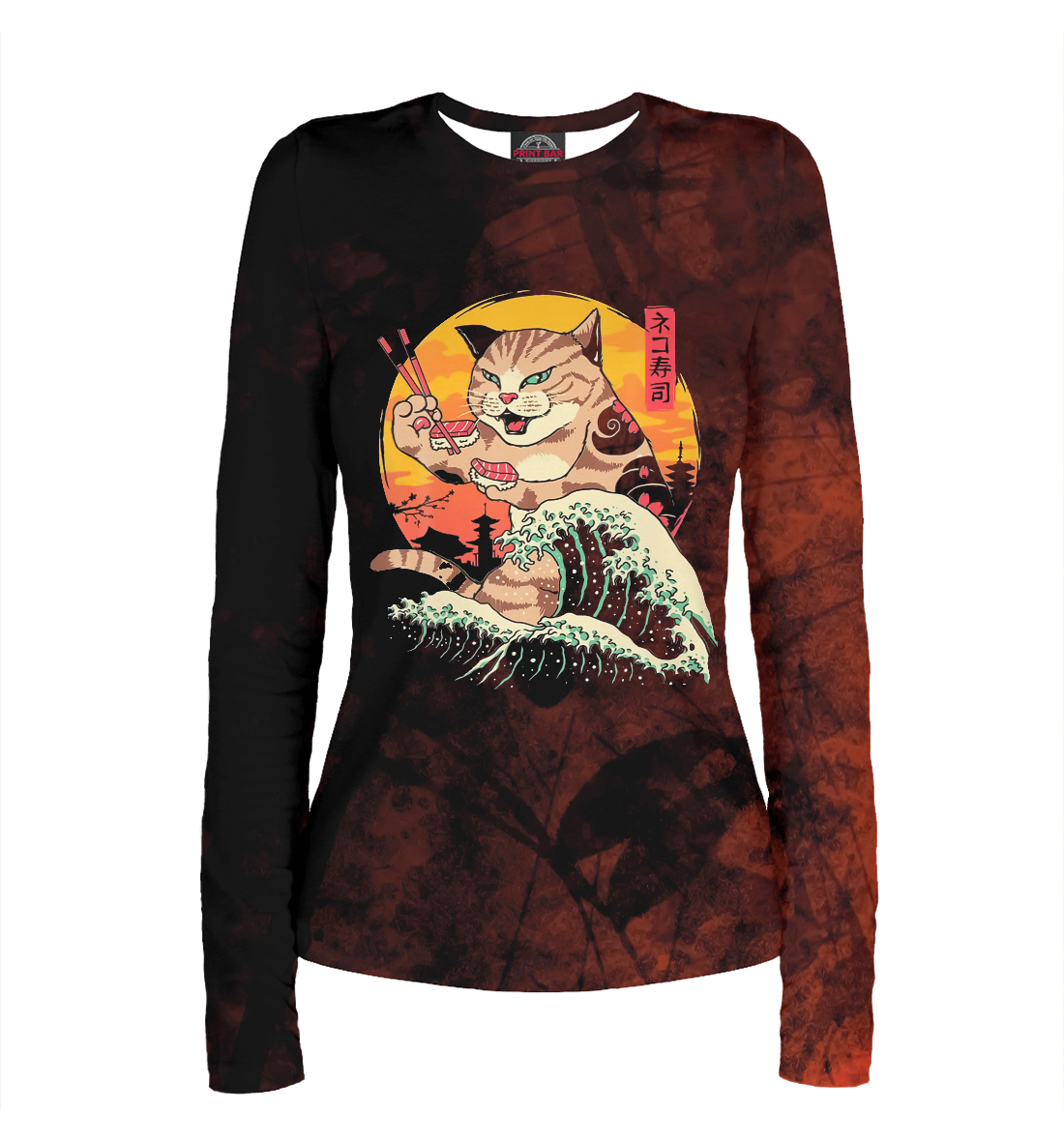 Женский лонгслив с принтом «Vintage Japan Art Cat Eatin»
