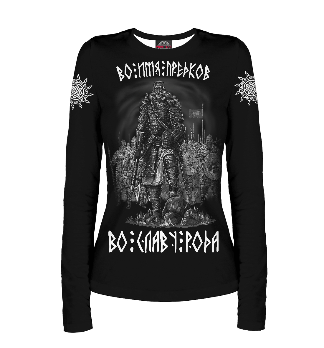 Женский лонгслив с принтом «Воины на поле битвы»