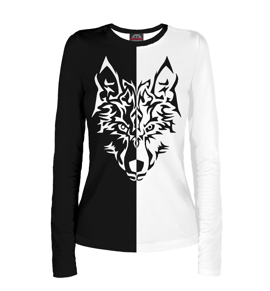Женский лонгслив с принтом «Волк (чёрно-белый)»