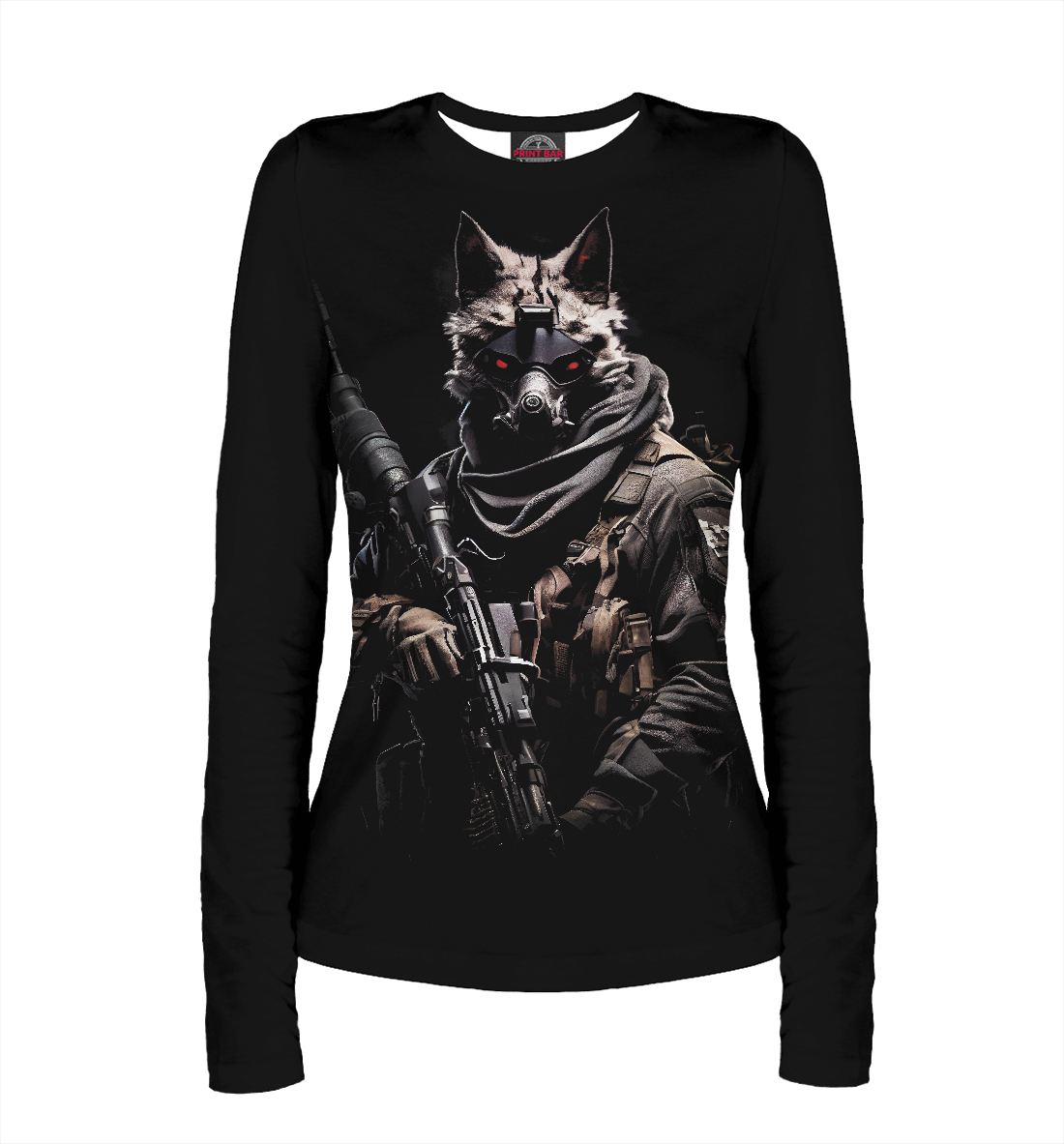 Женский лонгслив с принтом «Волк солдат спецназа»
