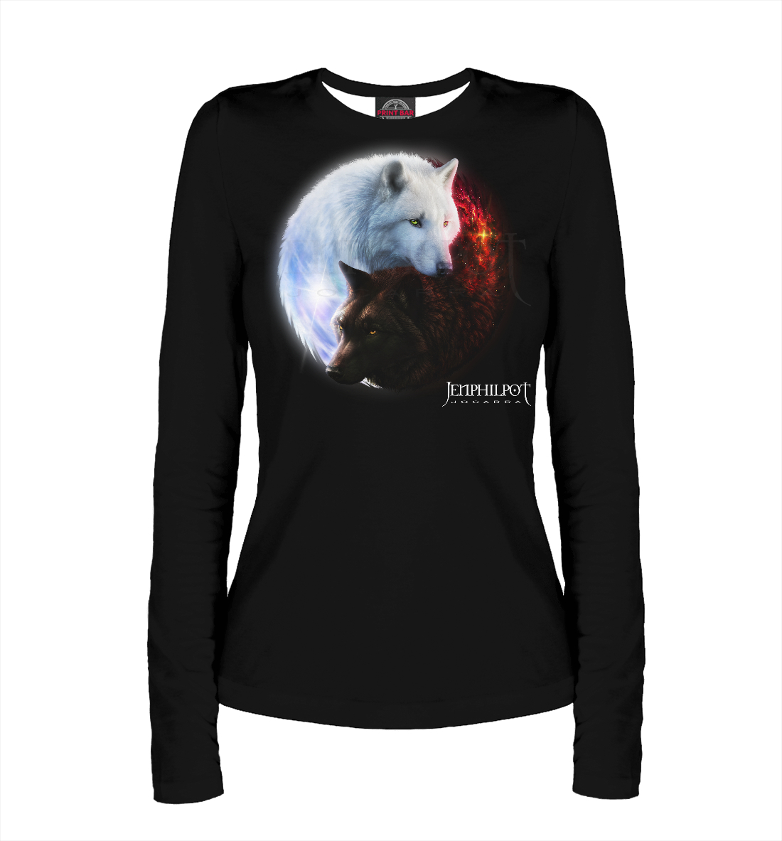 Женский лонгслив с принтом «Волки Инь и Ян»