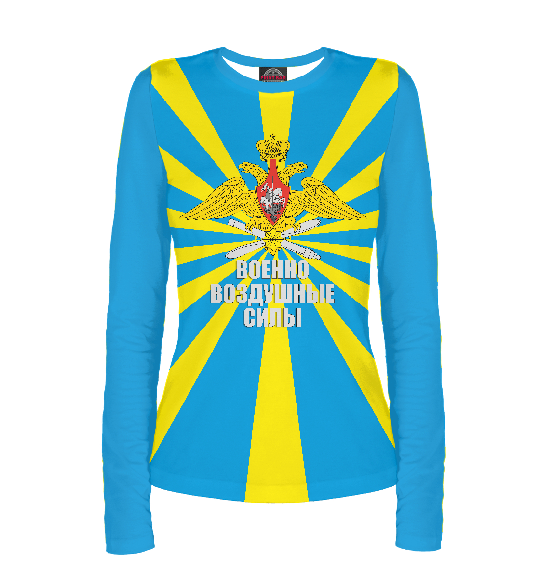 Женский лонгслив с принтом «ВВС РОССИИ (лучи)»