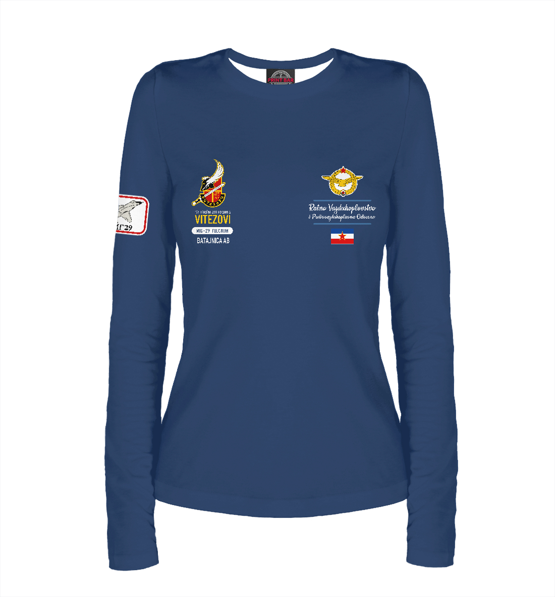 Женский лонгслив с принтом «ВВС Югославии - эскадрилья ВИТЯЗИ»