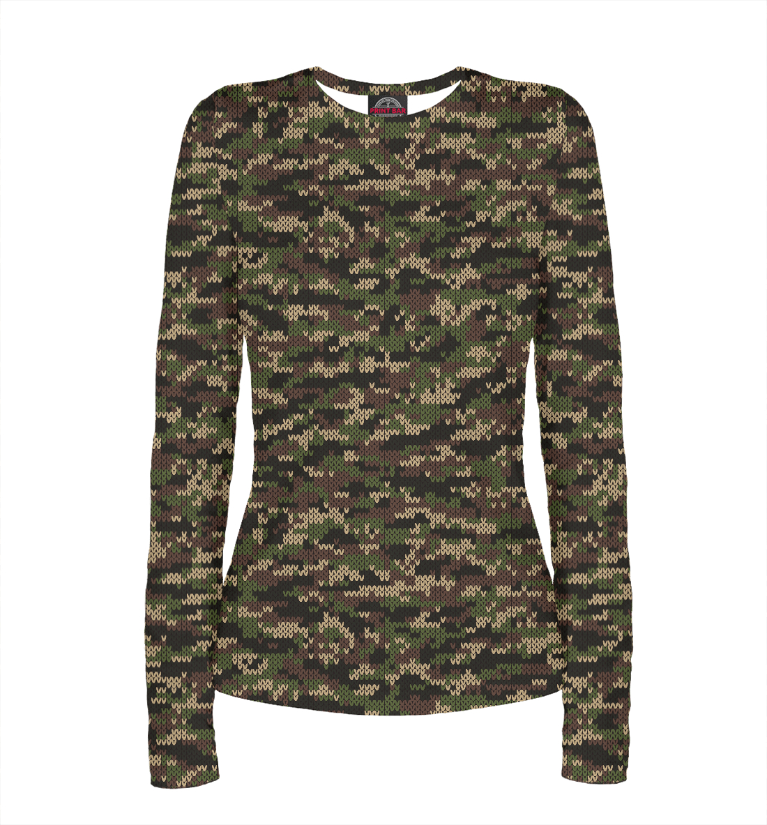 Женский лонгслив с принтом «Вязаный Камуфляж»