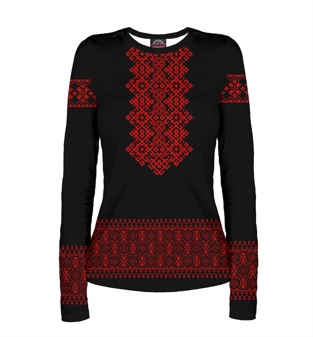 Женский лонгслив с принтом «Вышиванка с символами Рода»