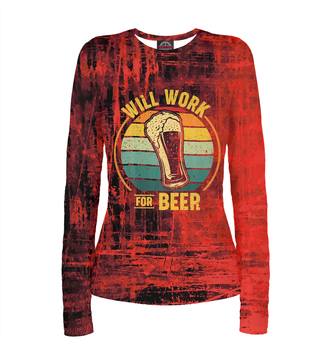 Женский лонгслив с принтом «Will Work For Beer»