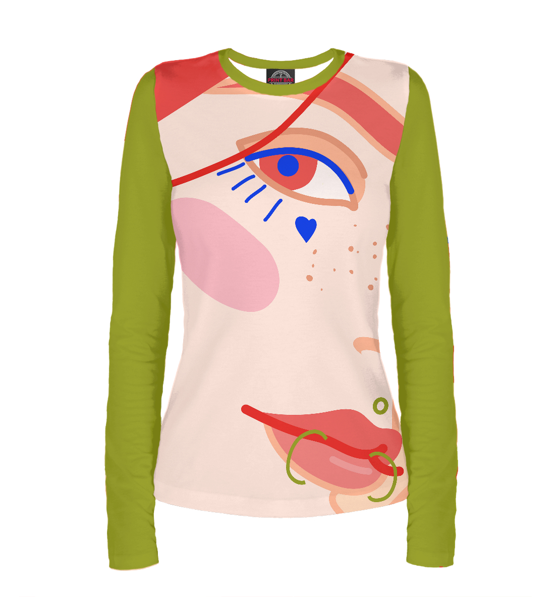 Женский лонгслив с принтом «Яркий женский портрет с пирсингом»