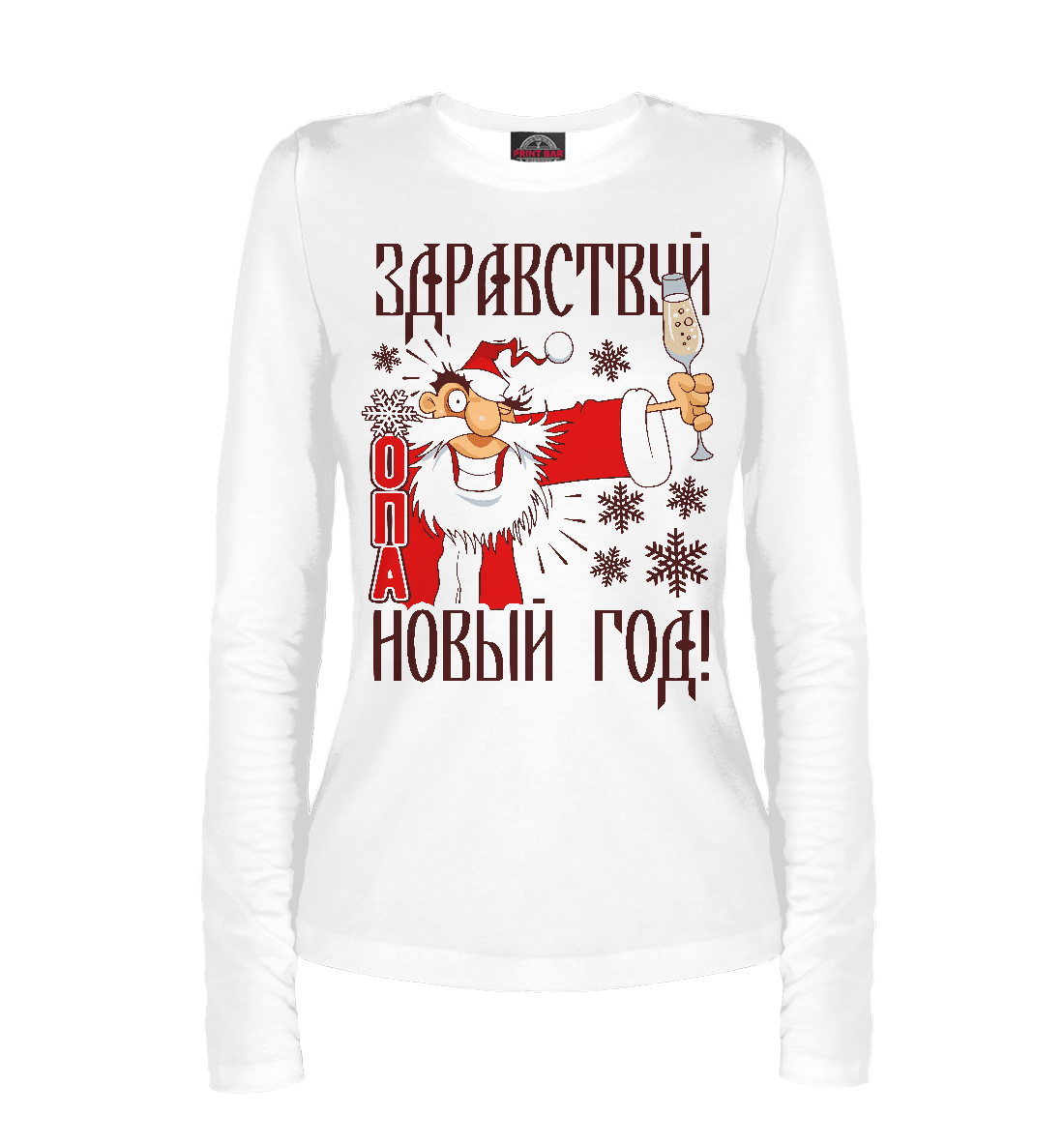 Женский лонгслив с принтом «Здравствуй ОПА Новый Год...»